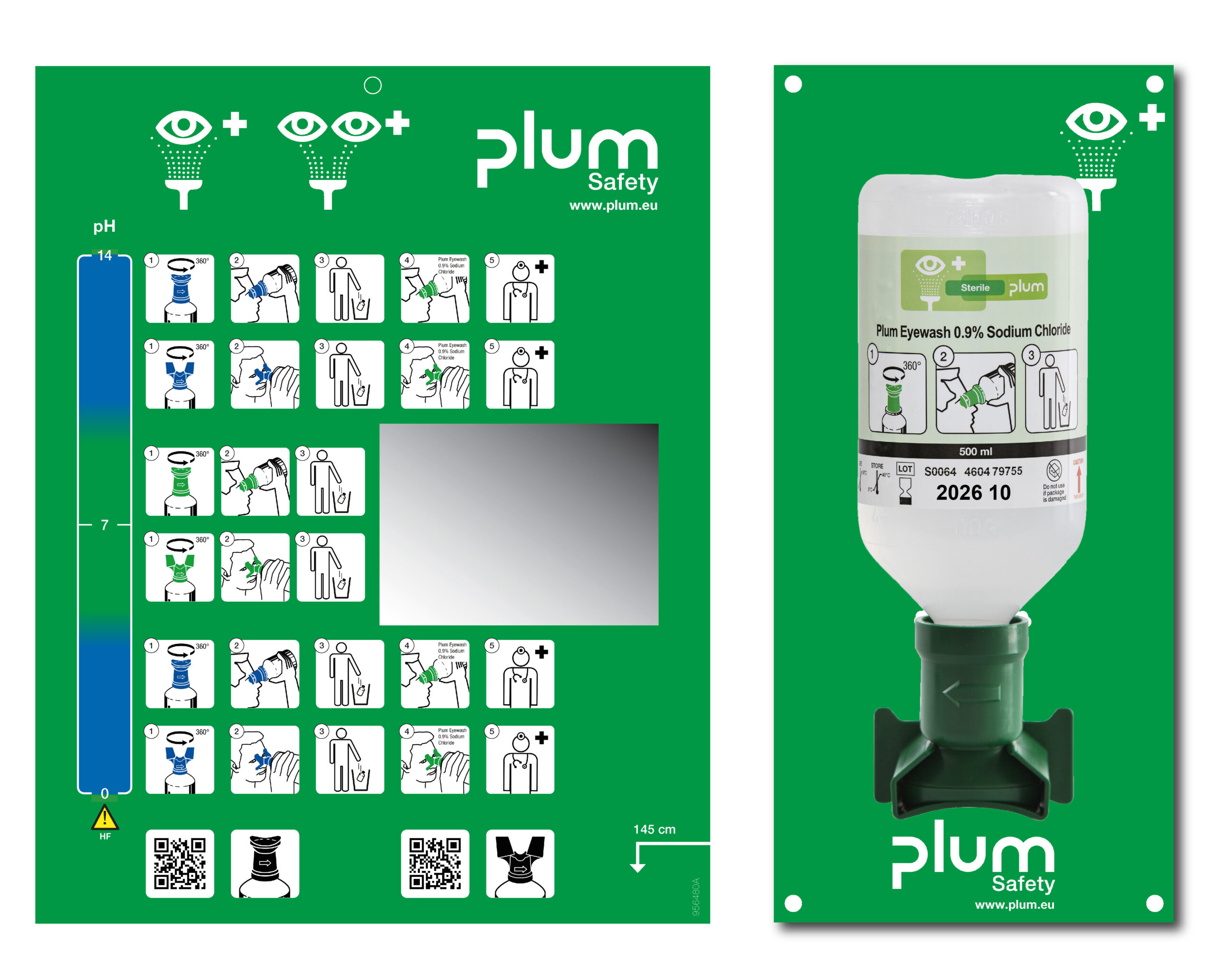 Plum Øyeskyll veggstasjon – med 500 ml natriumklorid