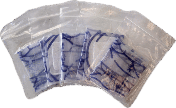 Hver duk leveres i en individuell zip-lock pose, noe som gjør den enkel å distribuere og oppbevare. Produktet selges i minimumskvantum på 100 stk, og egner seg godt til større kurs, utdanningsinstitusjoner og førstehjelpsopplæring.